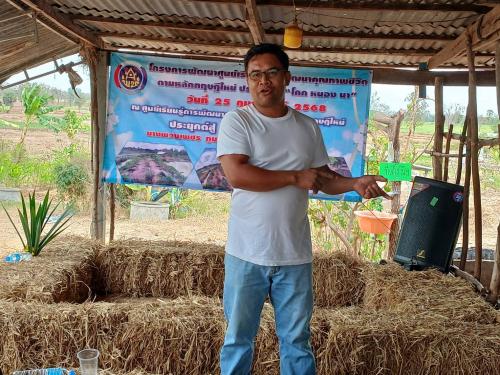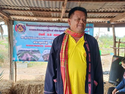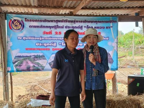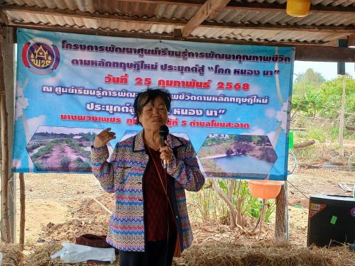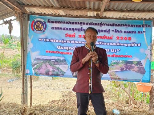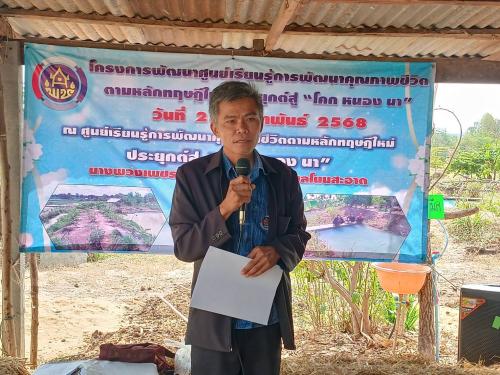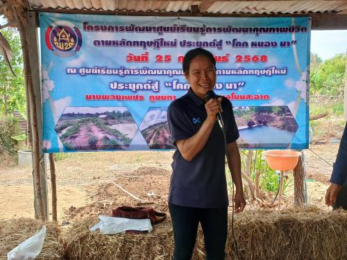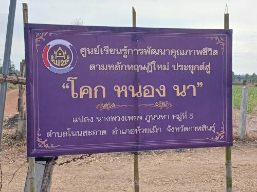 ณ แปลงศูนย์เรียนรู้ การพัฒนาคุณภาพชีวิตตามหลักทฤษฏีใหม่ แปลงนางพวงเพชร ภูนนทา หมู่ที่5 ตำบลโนนสะอาด อำเภอห้วยเม็กจังหวัดกาฬสินธุ์