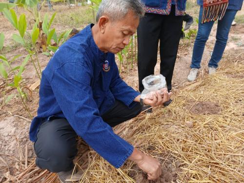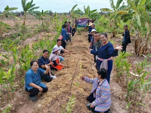 ณ แปลงศูนย์เรียนรู้ การพัฒนาคุณภาพชีวิตตามหลักทฤษฏีใหม่ แปลงนางพวงเพชร ภูนนทา หมู่ที่5 ตำบลโนนสะอาด อำเภอห้วยเม็กจังหวัดกาฬสินธุ์